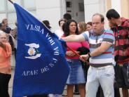 O manifesto, que foi organizado pela própria diretoria da Associação, aconteceu na calçada do Teatro Municipal e reuniu cerca de 150 pessoas, entre alunos, professores, país e amigos da APAE.